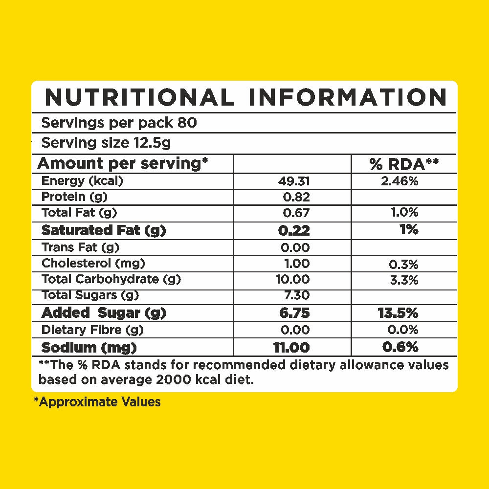 | Serving Per Pack 80 | Serving size 12.5g | ||